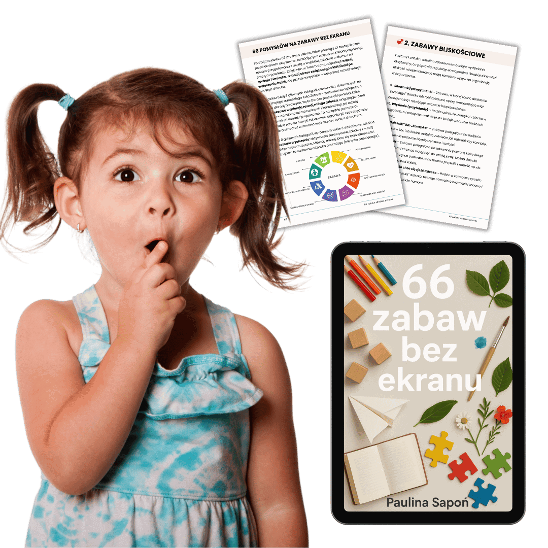 Ten PDF daje Ci gotową listę aktywności, które pomagają ograniczyć ekrany, redukują marudzenie i wzmacniają więź z dzieckiem.